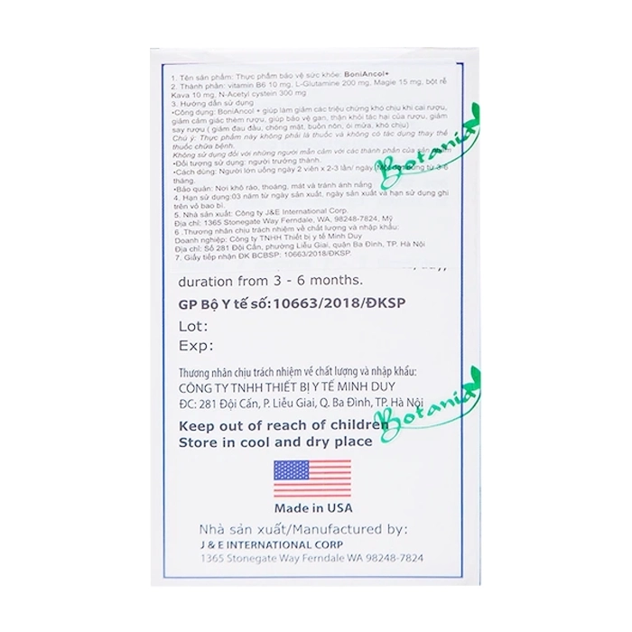 Thực phẩm cai rượu Boniancol , Hộp 60 viên