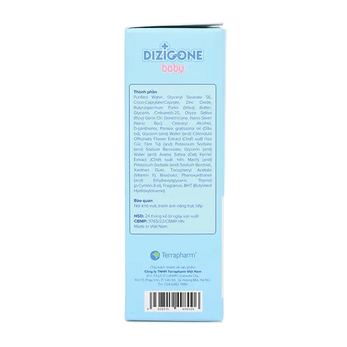 - Làm sạch, thấm khô và thoa một lượng vừa đủ kem Dizigone Baby lên vùng da cần chăm sóc. Sử dụng ngày 3-4 lần hoặc nhiều hơn.