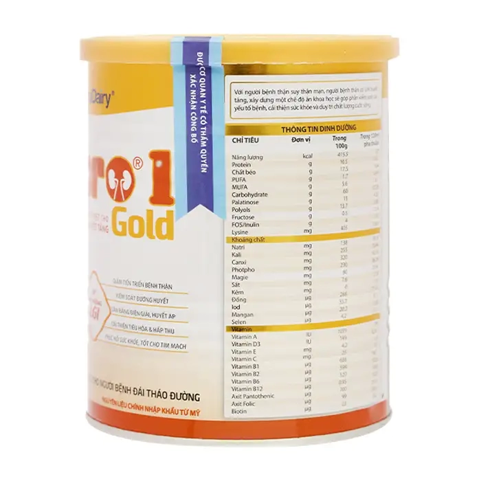 - Nepro 1 Gold sử dụng hệ bột đường hấp thu chậm giúp ổn định đường huyết, bổ sung các Vitamin và khoáng chất giúp bồi bổ, tăng cường sức khỏe cho người sử dụng.