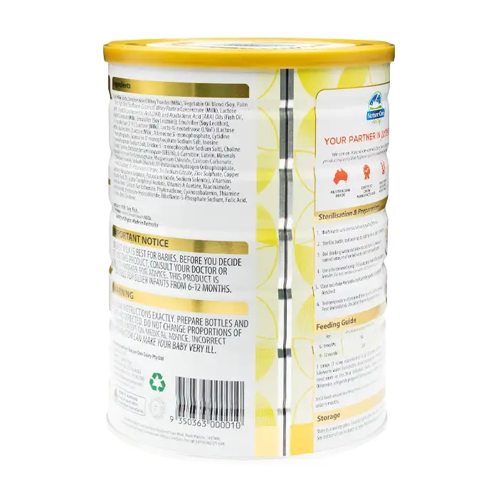 - Sữa gầy , Bột Whey khử khoáng ( Sữa ), Hỗn hợp dầu thực vật ( Đậu nành , Dầu cọ, Hướng dương có hàm lượng Oleic cao, Dừa), Whey Protein Cô đặc ( Sữa ), Lactose ( Sữa ), Axit Docosahexaenoic khô (DHA) và Axit Arachidonic (ARA) Dầu ( Dầu cá , Natri Caseinate ( Sữa ), Chất nhũ hóa ( Soy Lecithin)), Chất nhũ hóa ( Soy Lecithin), 2'-Fucosyllactose (2′-FL) (Lactose ( Sữa )), Lacto-N-neotetraose (LNnT) ( Lactose ( Sữa )), Nucleotides ((Lactose ( Sữa ), Adenosine 5′-monophosphate, Cytidine 5′-monophosphate, Muối natri Guanosine 5′-monophosphate, Muối natri Inosine 5′-monophosphate, Muối natri Uridine 5′-monophosphate) , Choline Clorua, Taurine, Bifidobacteria longum (BB536), L-Carnitine, Lutein, Khoáng chất (Canxi Hydro Orthophosphate, Magie Clorua, Canxi cacbonat, Kali Clorua, Natri Clorua, Di-Kali Hydro Orthophosphate, Sắt sunfat, Tri-Kali Citrate, Tri-Sodium Citrate, Kẽm Sulphate, Đồng Sulphate, Mangan Sulphate, Kali Iodide, Natri Selenite), Vitamin (Axit ascoricic, DL-alpha-Tocopheryl Acetate, Vitamin A Acetate, Niacinamide, Cholecalciferol, Canxi Pantothenate, Phytonadione, Cyanocobalamin, Thiamine Hydrochloride , Pyridoxine Hydrochloride, Riboflavin-5-Phosphate Natri, Axit Folic, D-Biotin, Beta Carotene).