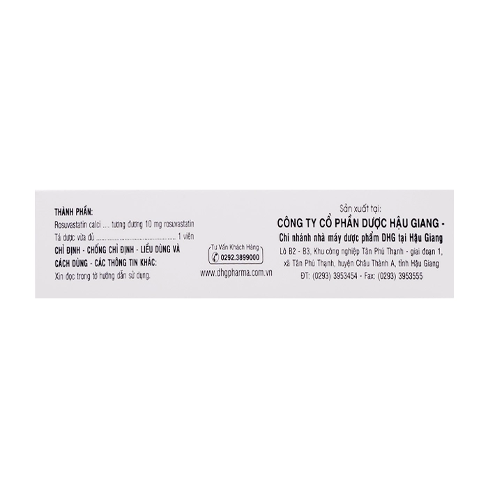 - Rosuvastatin (dưới dạng rosuvastatin calci) 10mg.