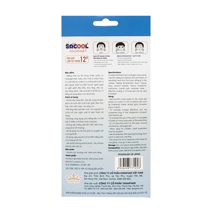 Công dụng của Sacool Kingphar 6 miếng - Miếng dán hạ sốt
