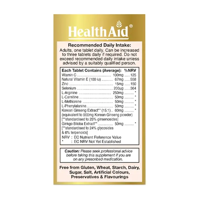 - Vitamin C, Vitamin E, Zinc, Selenium, L-Arginine, L-Carnitine, L-Methionine, L-Phenylalanine, CHiết xuất nhân sâm hàn quốc, Chiết xuất Ginkgo Biloba