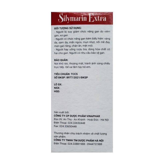 Silymarin Extra Vinaphar, 12 vỉ x 5 viên