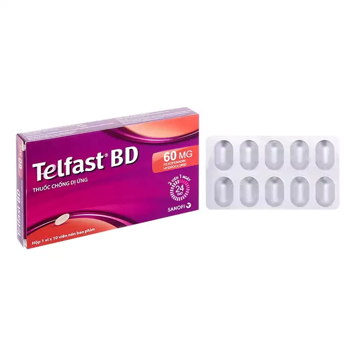 Telfast BD 60mg 1 vỉ x 10 viên - Trị viêm mũi dị ứng, mày đay