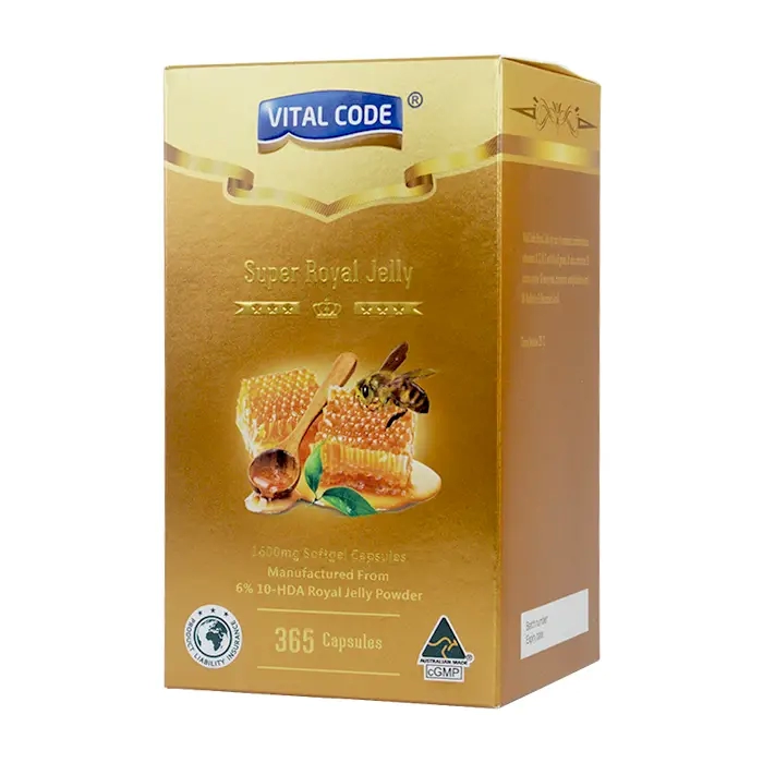 - Vital Code Super Royal Jelly được sản xuất từ sữa ong chúa đông khô giúp cung cấp nồng độ protein và carbohydrate của sữa ong chúa tươi, sản phẩm được pha chế đặc biệt để hỗ trợ duy trì hoặc cải thiện sức khỏe nói chung, cũng như làm đẹp da và chống lão hoá.